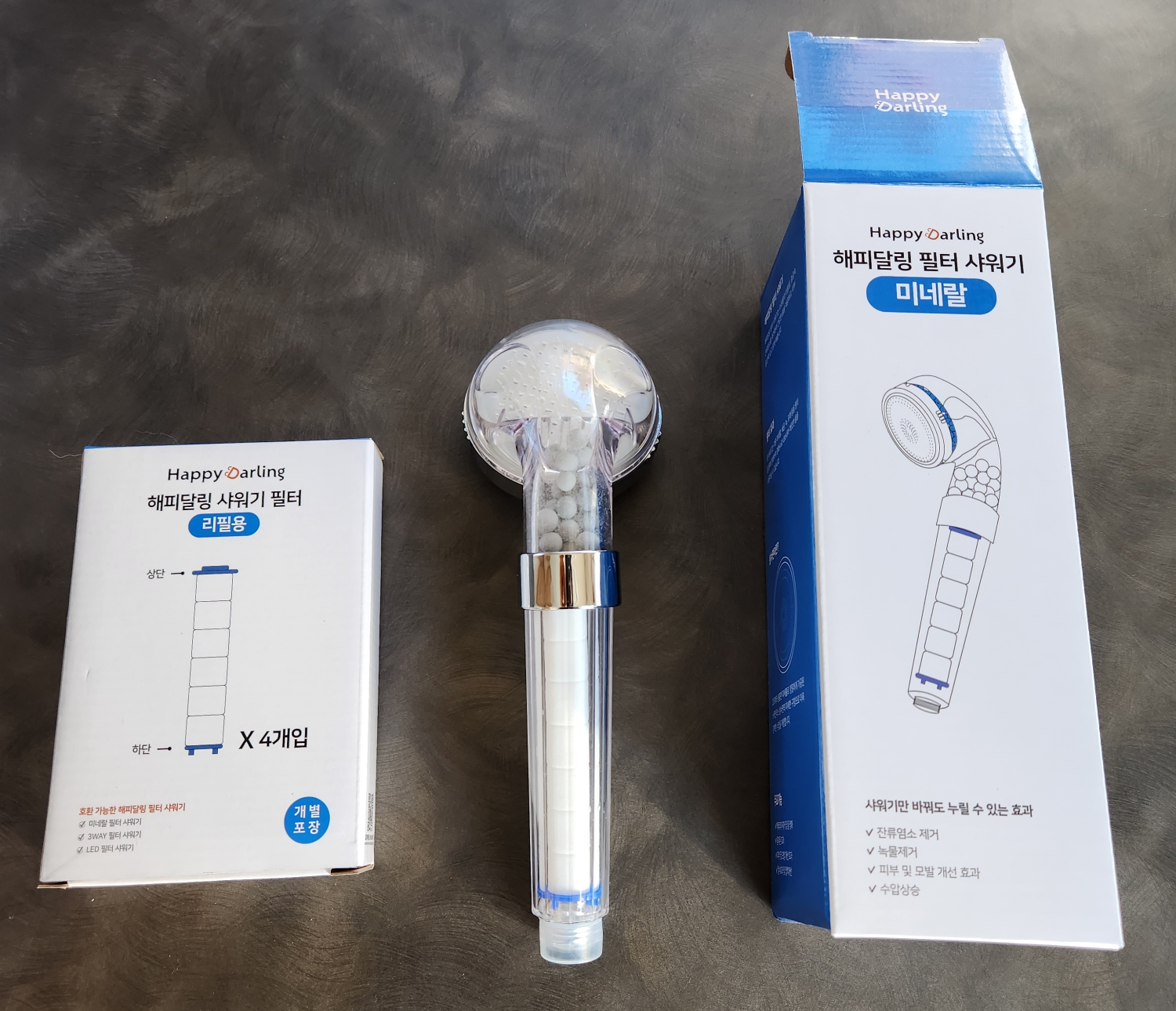 다이소에서도 살까 하다가 이전에 노지에서 녹물 경험도 있고 했기에 아이들과 가족들의 피부를 위해 필터가 달린 용으로 구매하였고, 별 문제 없이 아래처럼 교체 완료 하였다.