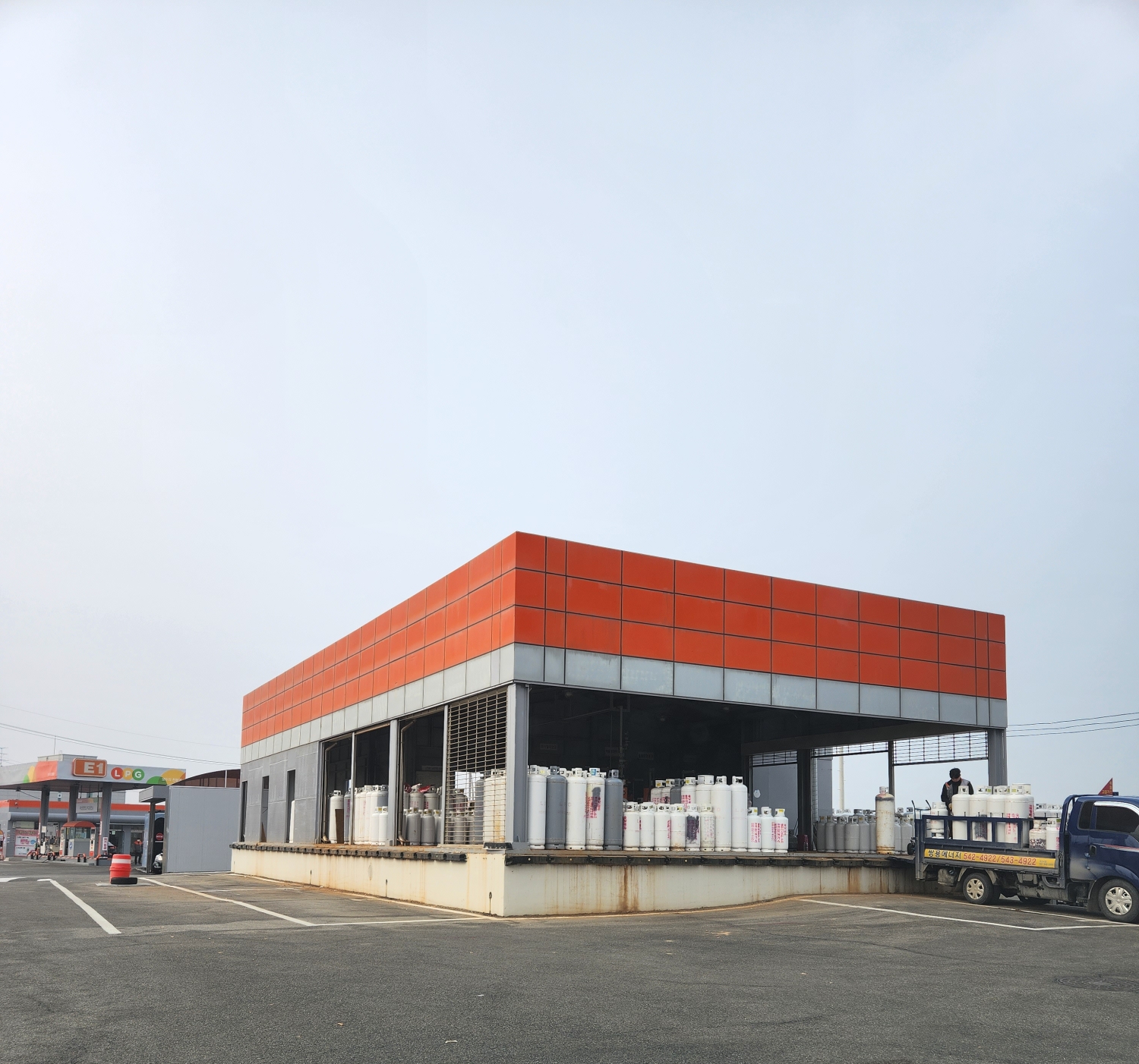 도로가에서 실시간으로 아마 주택이나 상가용 LPG 가스통을 충전하는 모습이 바로 보일건데 거기로 들어가면 된다. 바로 앞에 사무실이 있고 사무실에서 얼마나 넣을지 결재 한다음 가스통을 들고 가스 충전하는 직원분들께 가져가면 금방 넣어 주신다.