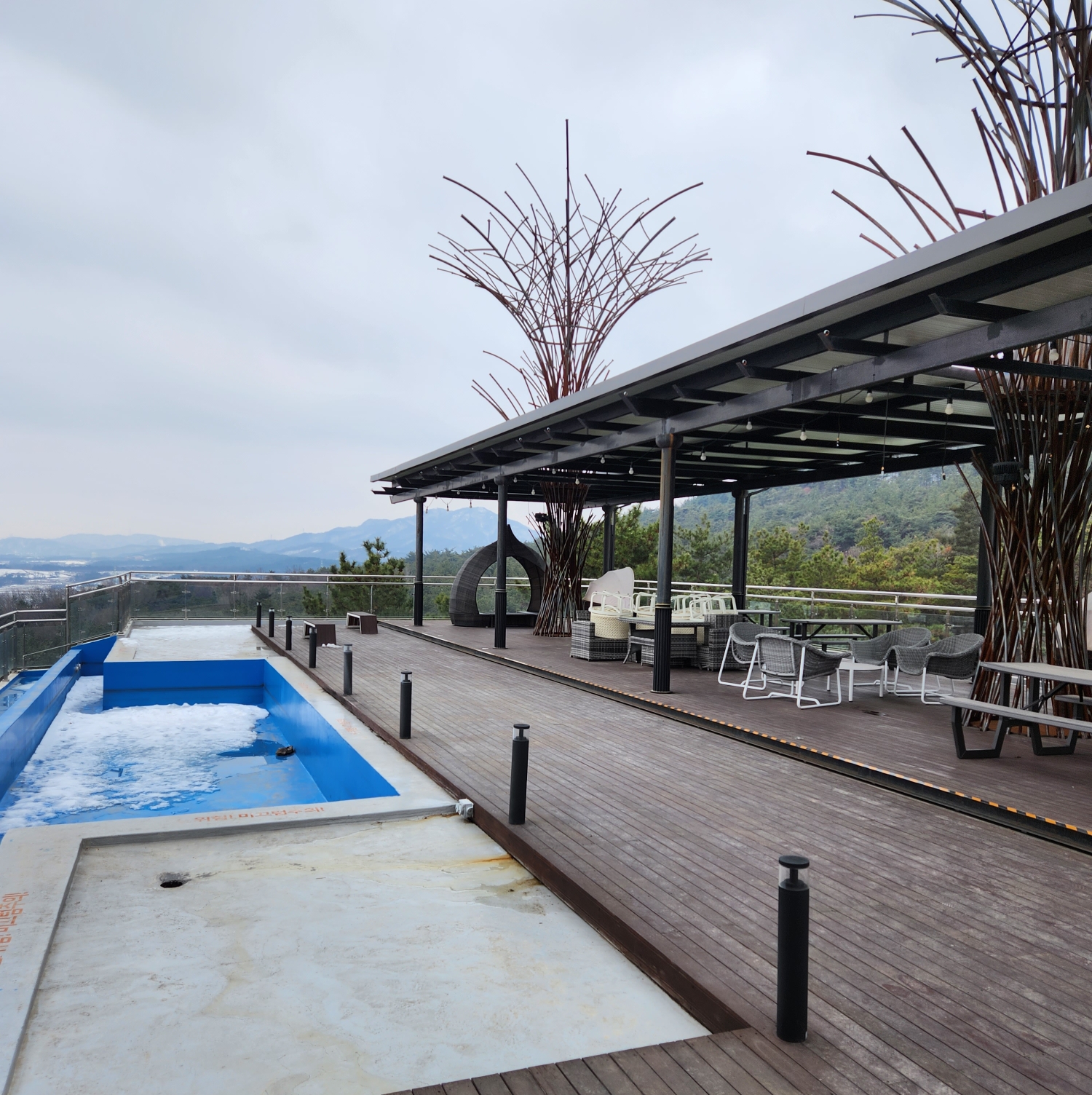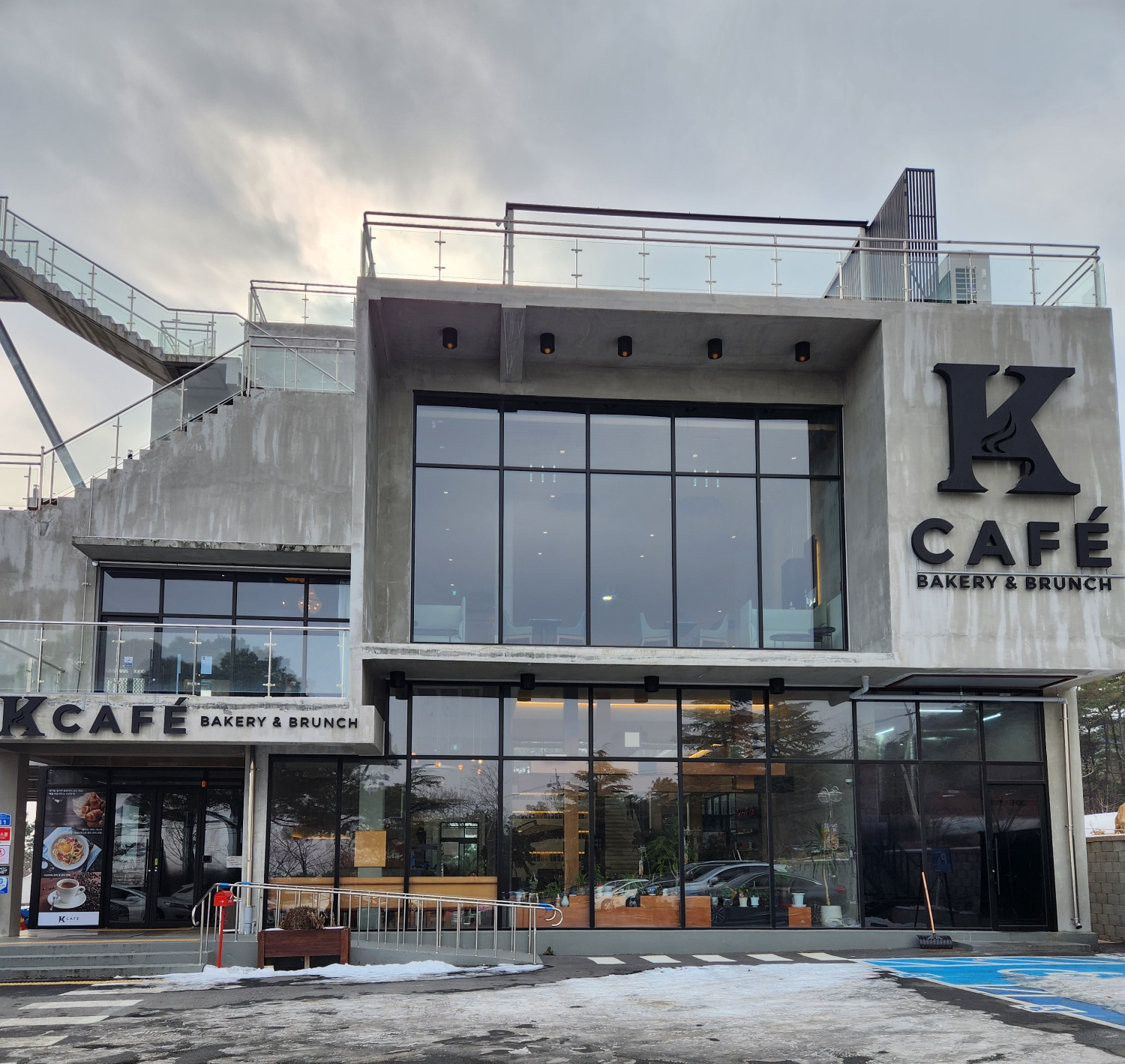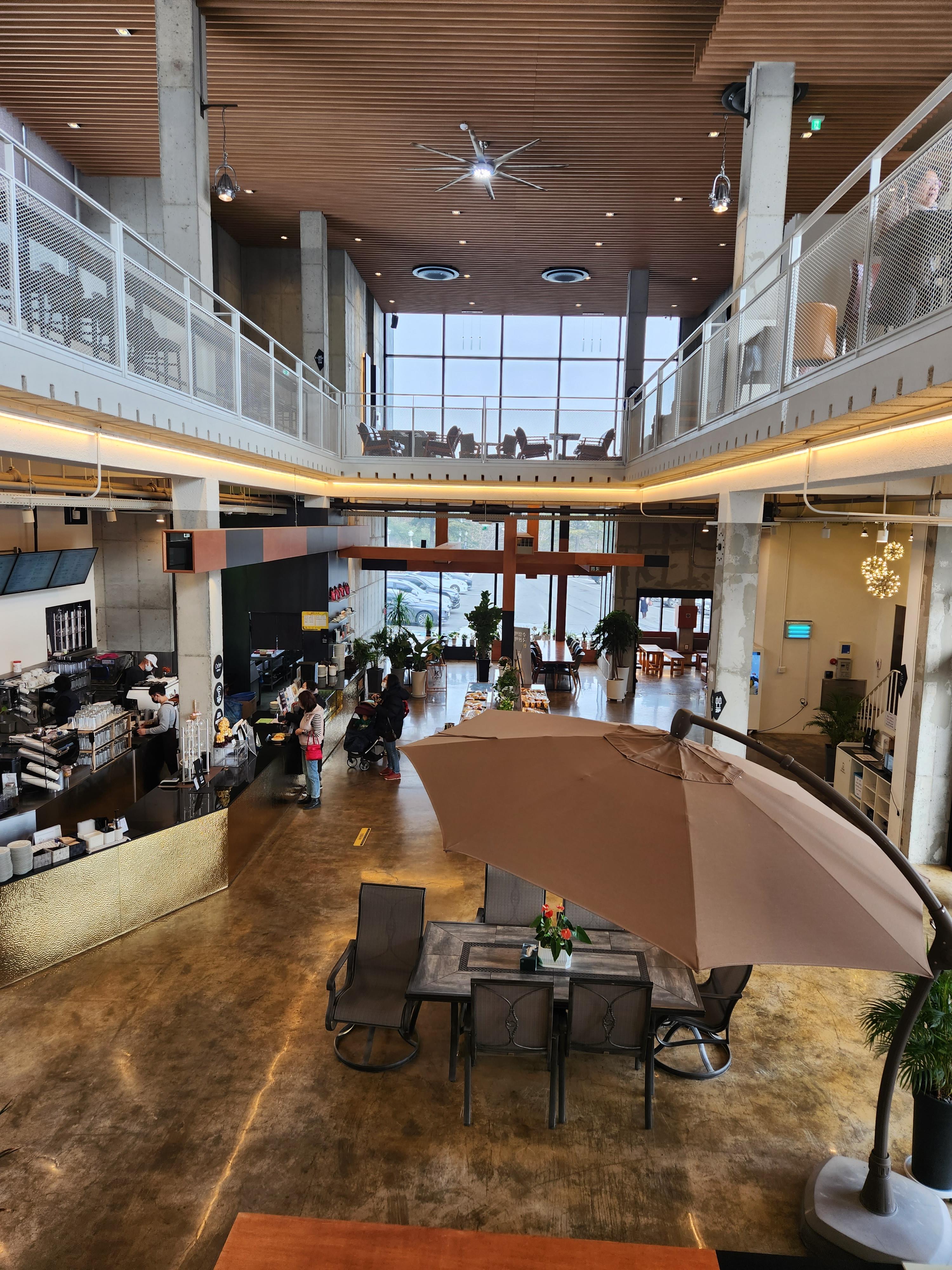 1층과 2층 사이에 공간으로 또 좌석들이 있고, 3층 옥상에는 눈오는 현재에는 이용하진 않지만 날이 좋은 날에는 뒤편으로는 산과 도시 아래 뷰를 보기에 좋은 자리로 사진 뷰도 좋을 듯 하다.