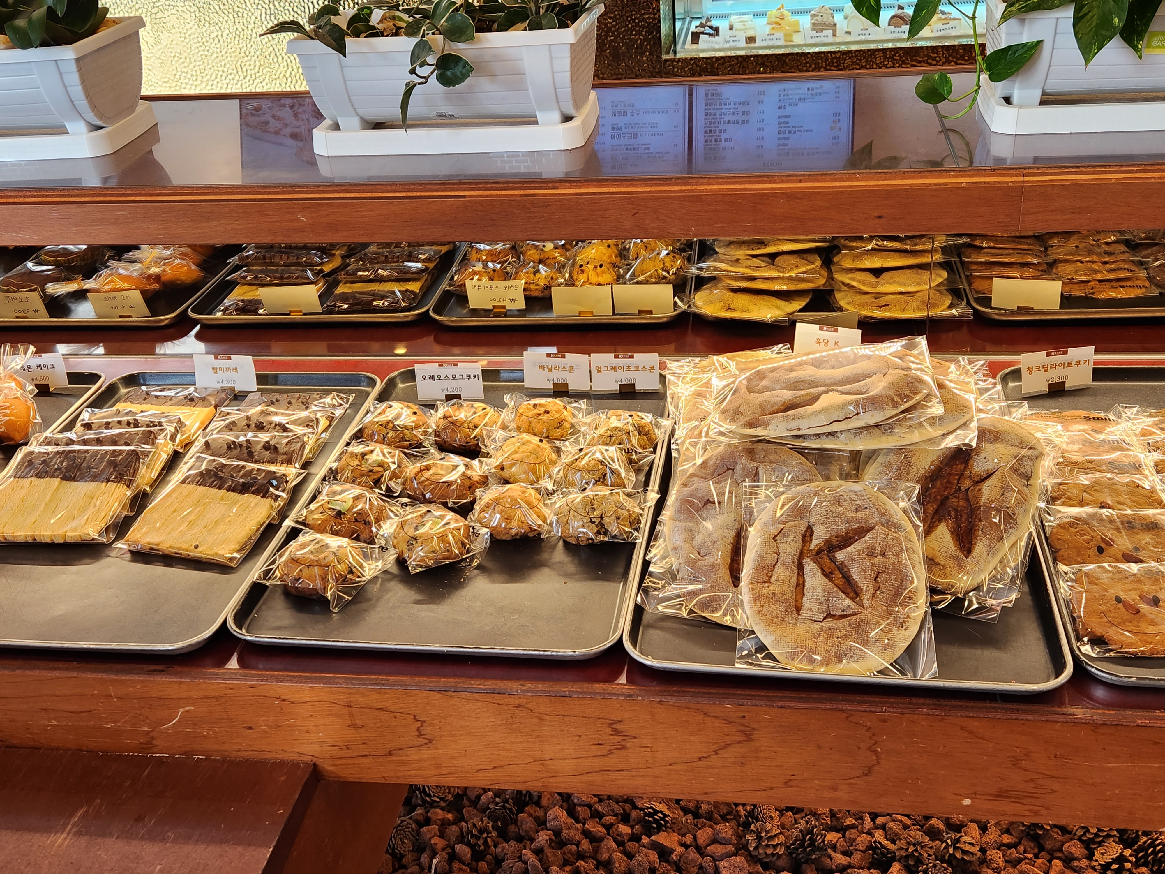 케이카페는 들어와보면 맛있어 보이는 많은 빵들이 가득 자리잡고 있어 베이커리가 유명한 것 같이 골라 먹는 재미가 있다.