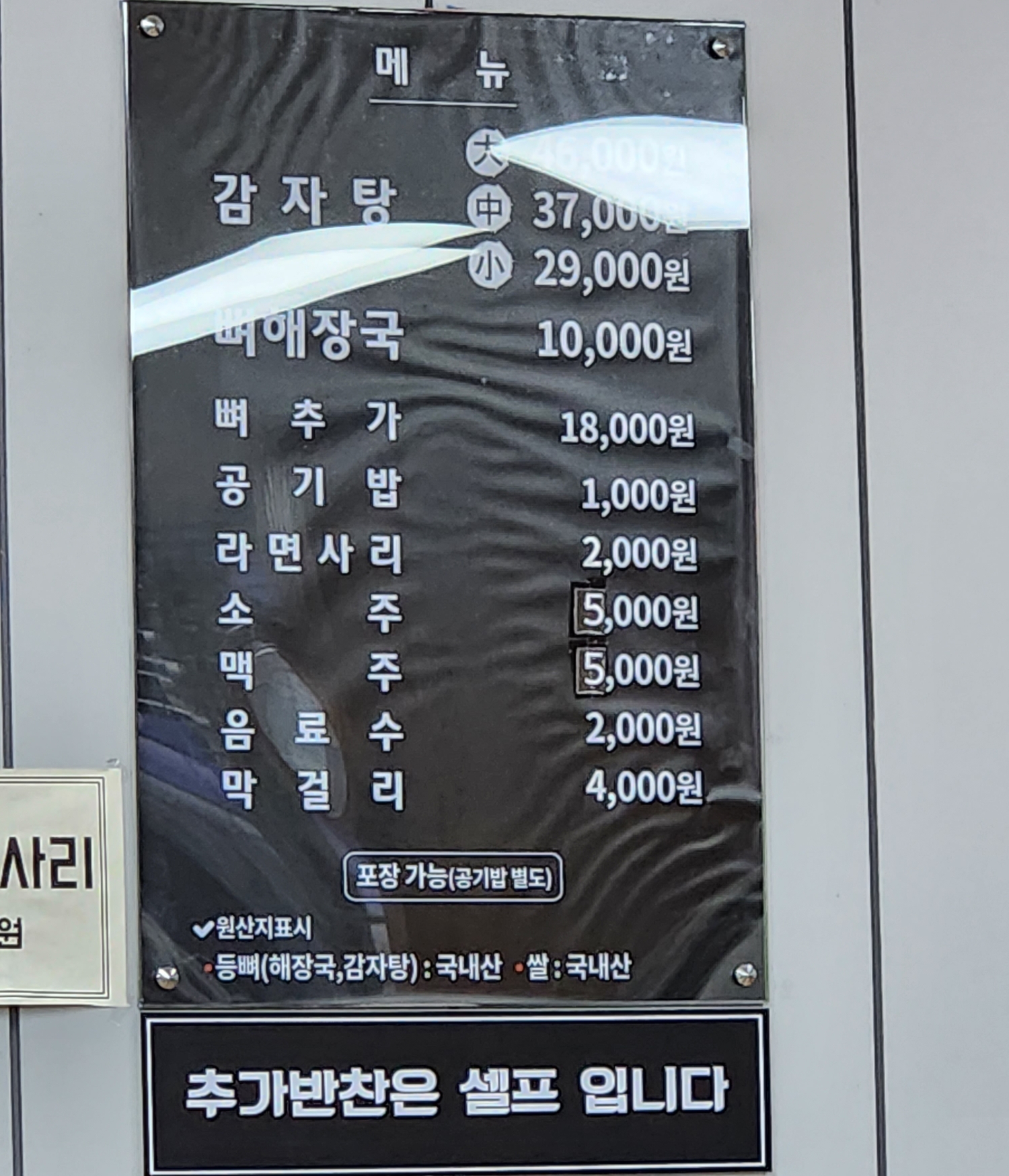 가격 : 뼈해장국1그릇 10,000원, 감자탕 중 37,000원