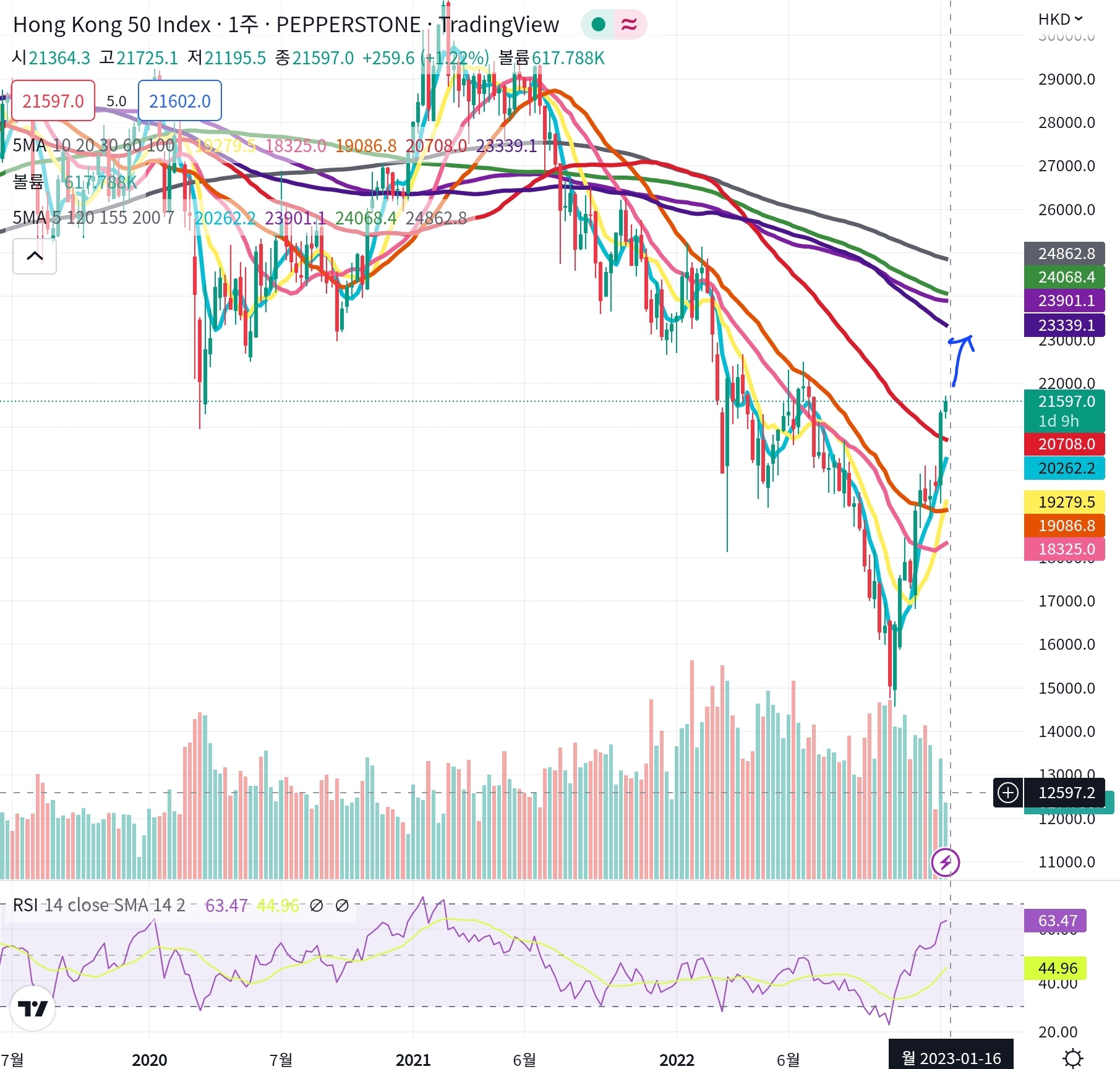 중국의 리오프닝으로 인한 유동성이 돌고 있다고도 보이고 미중 패권다툼 속에서도 중국의 상승추세는 또다른 기회가 될 수 있을 것 같다.